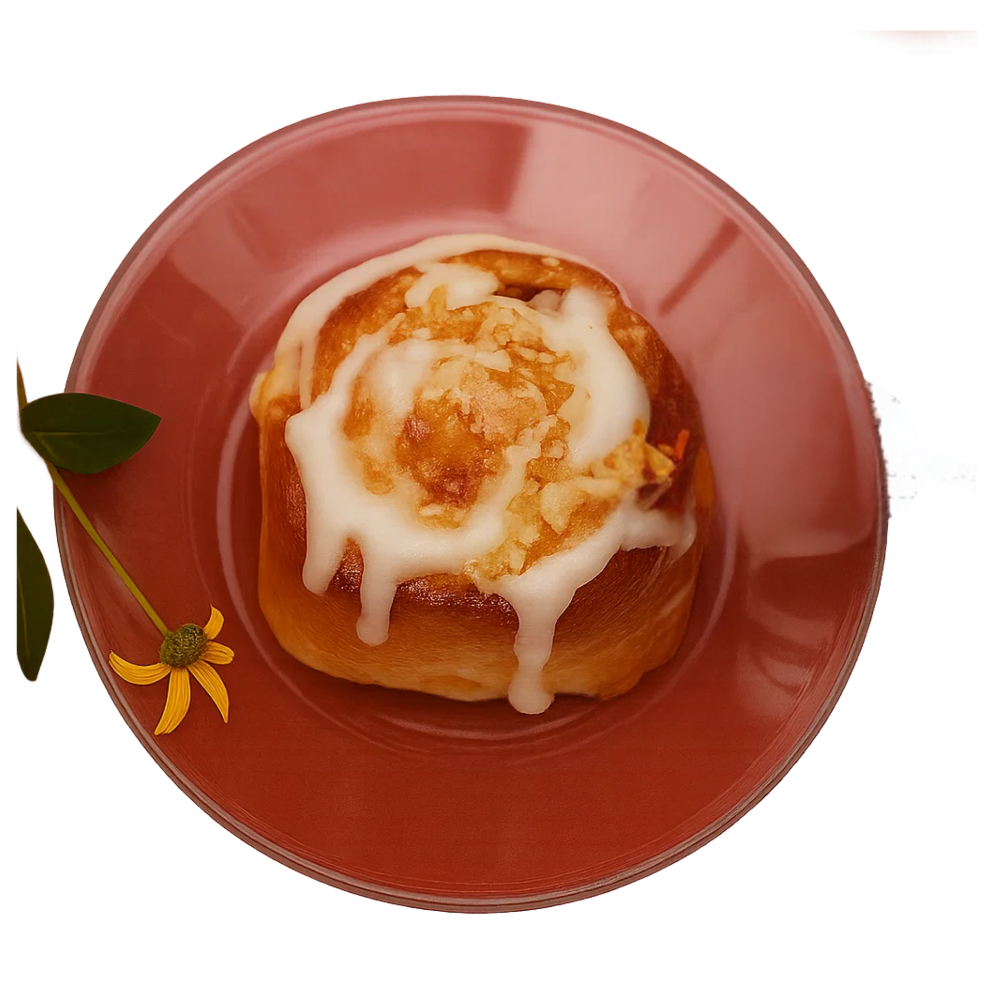 Warm spiced apple filling wrapped in Mama’s soft dough, toppedwith a golden crumble that melts and crunches with every bite.A cozy winter hug in swirl form.